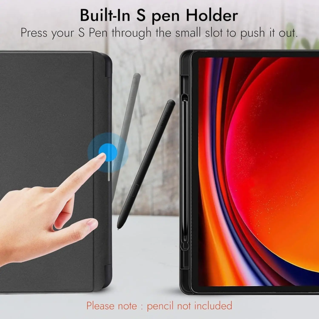 Flip Design and S-Pen Holder : Enjoy the convenience of the flip design, providing highly adjustable viewing angles, making it great for work, browsing, and multimedia on your Samsung Tab S9 / Tab S9 FE. Comes with Integrated Pen Holder to safely carry your S-Pen.