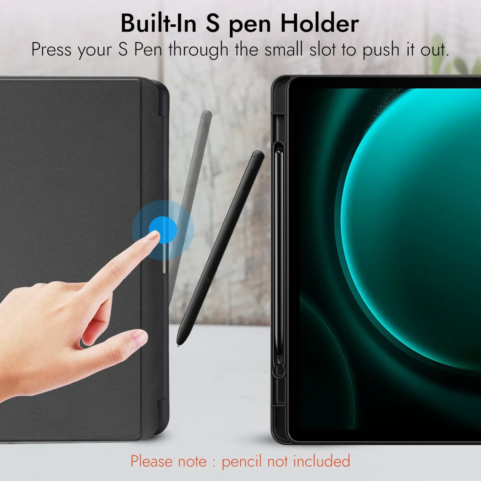 Flip Design and S-Pen Holder : Enjoy the convenience of the flip design, providing highly adjustable viewing angles, making it great for work, browsing, and multimedia on your Samsung Tab S9 Plus / Tab S10 Plus / Tab S9 FE Plus 12.4 inch. Comes with Integrated Pen Holder to safely carry your S-Pen.