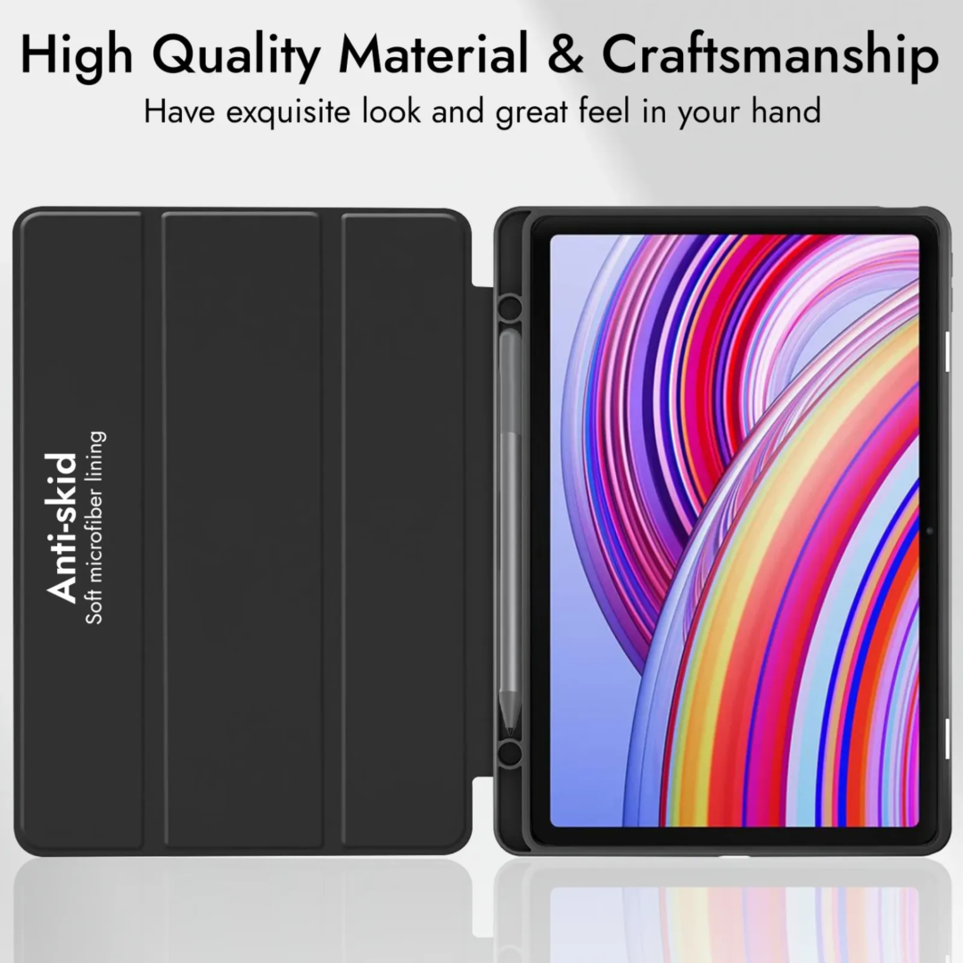 Trifold Design and Pen Holder : Enjoy the convenience of the flip design, providing adjustable viewing and typing angles, making it great for work, browsing, and multimedia on your Redmi Pad Pro 12.1. Comes with Integrated Pen Holder to safely carry your Stylus Pen.