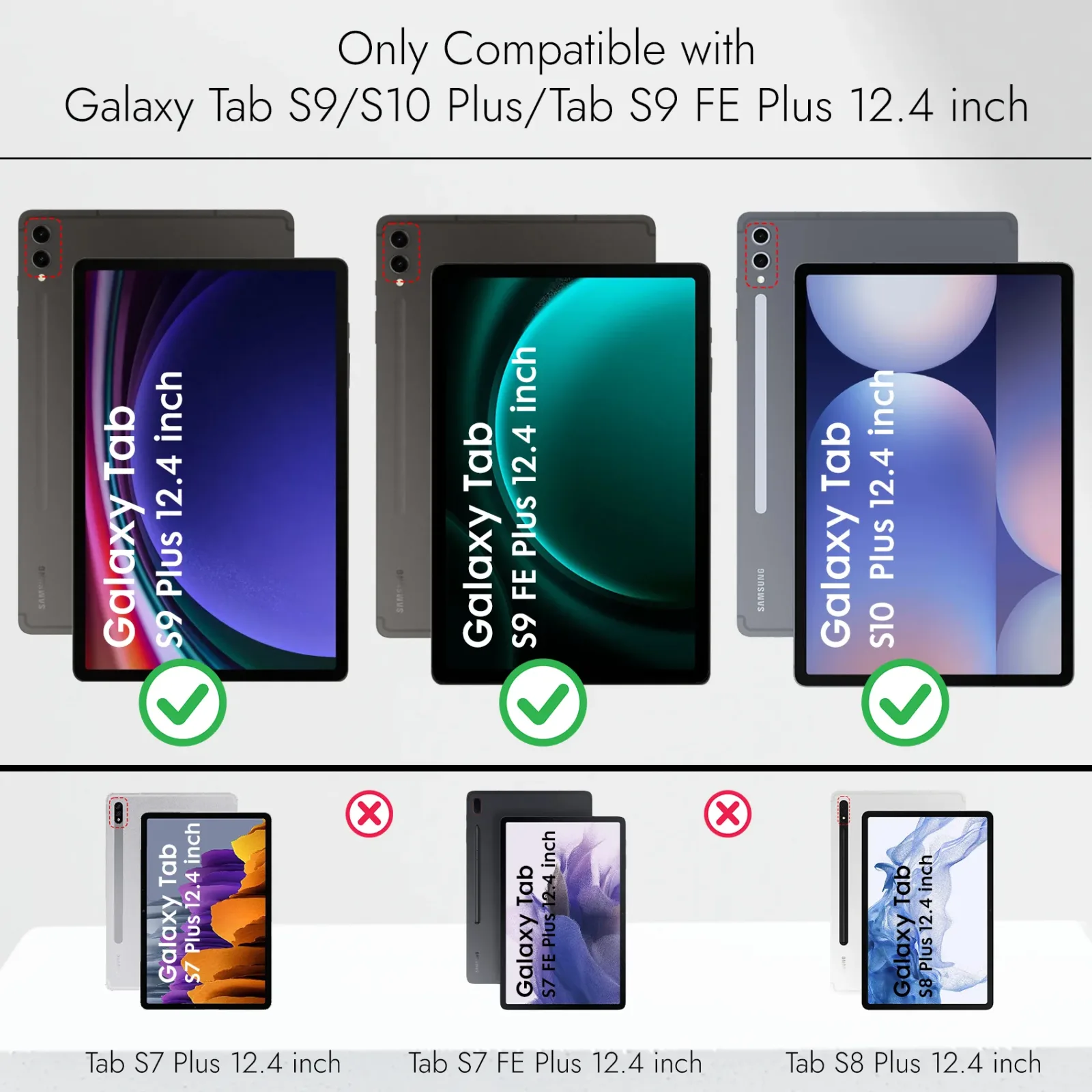 Compatibility : This Cover designed for Samsung Galaxy Tab S9 FE Plus / Tab S9 Plus / Tab S10 Plus 12.4 inch. It will not fit any other model.