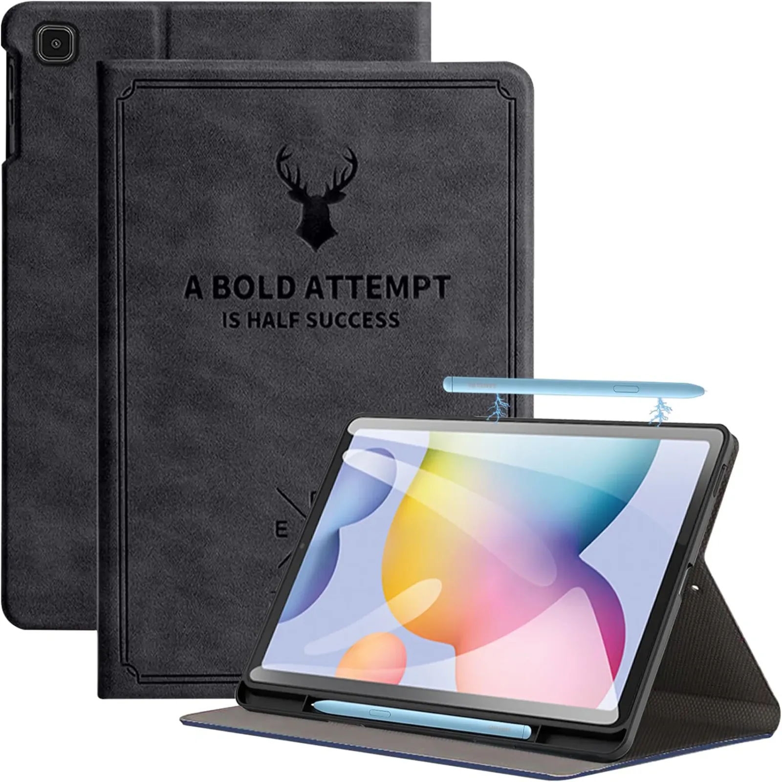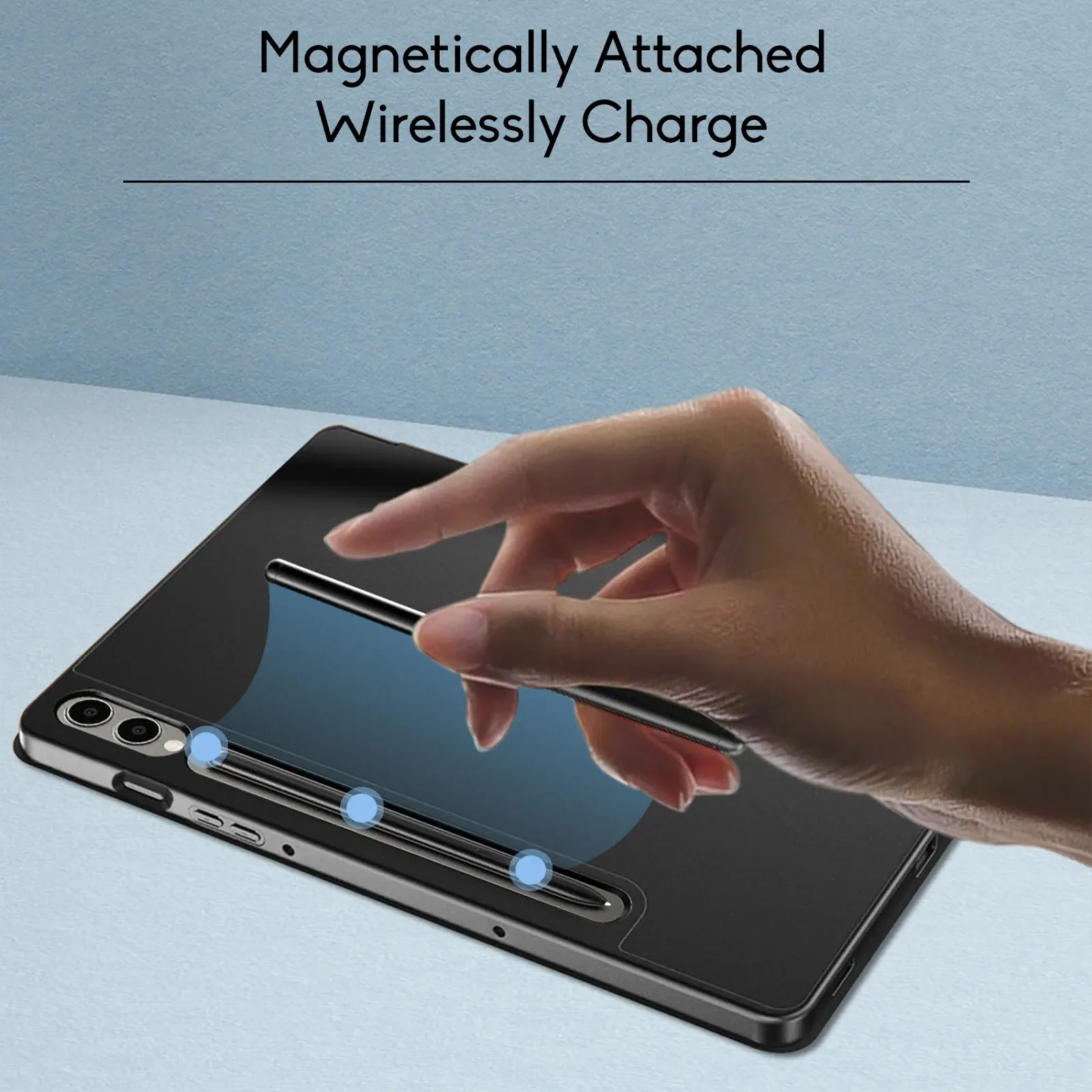 Pencil Holder & Magnetic Attachment : Built-In Pencil Holder to securely carry your S-Pen. The Cover also has a cut at the back to magnetically attach your S-Pen at the back for charging.