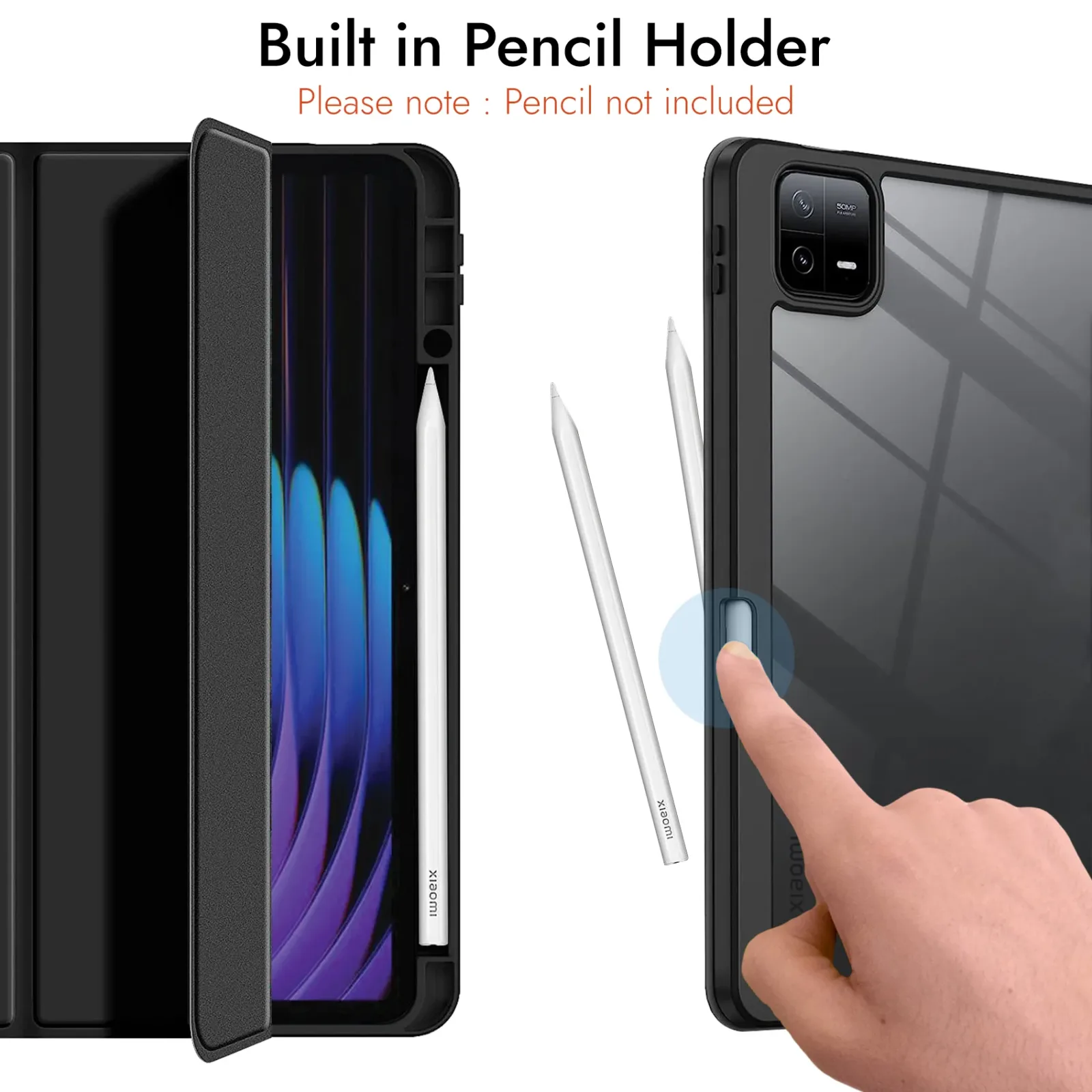 Premium Material with Transparent Hybrid Back : Crafted with the utmost attention to detail, this for Xiaomi Pad 7 cover boasts a high-quality construction. The exterior, composed of durable materials, now features a transparent hybrid back, showcasing the sleek design of your Mi Pad 7. The interior maintains a soft lining to safeguard your tablet from potential scratches and impacts.