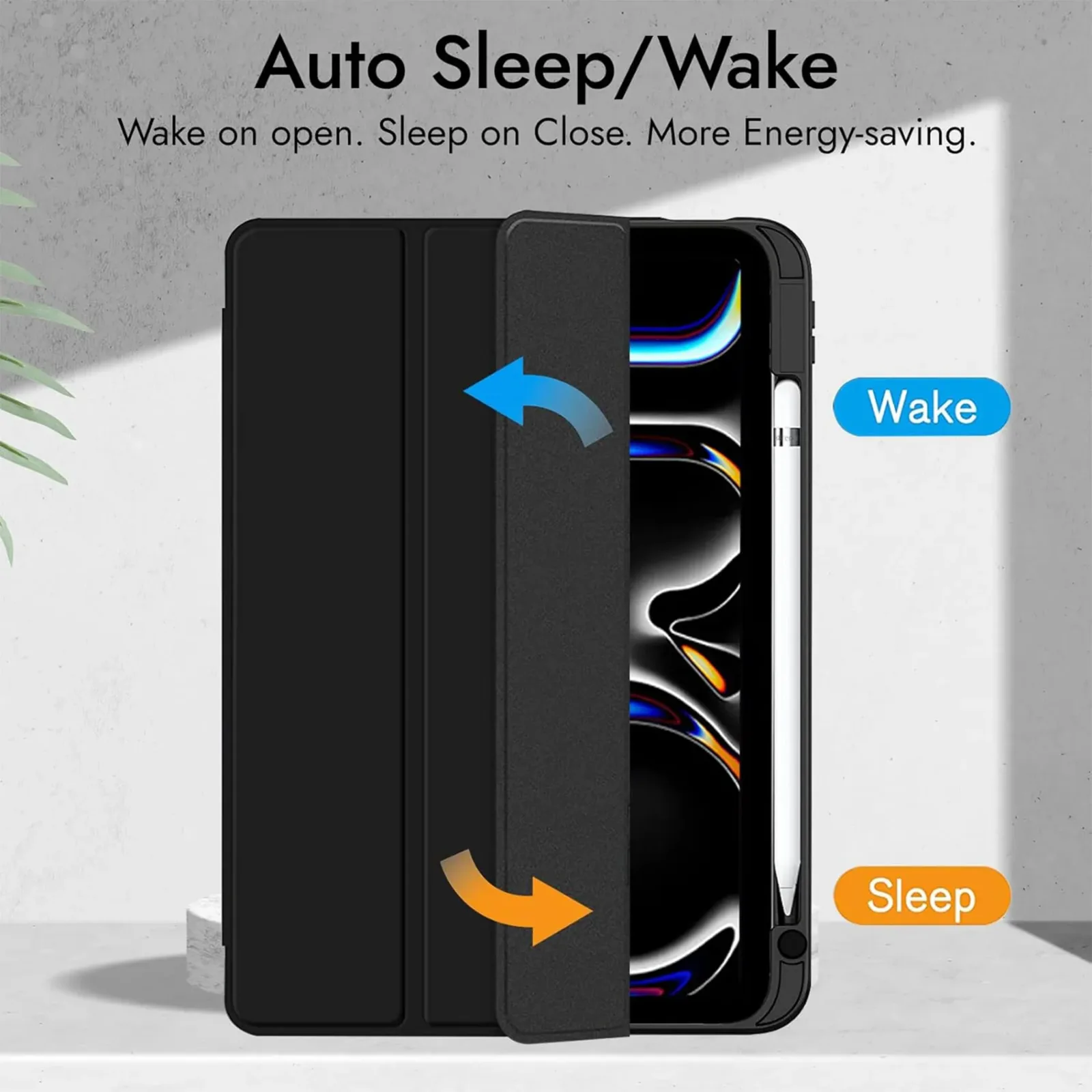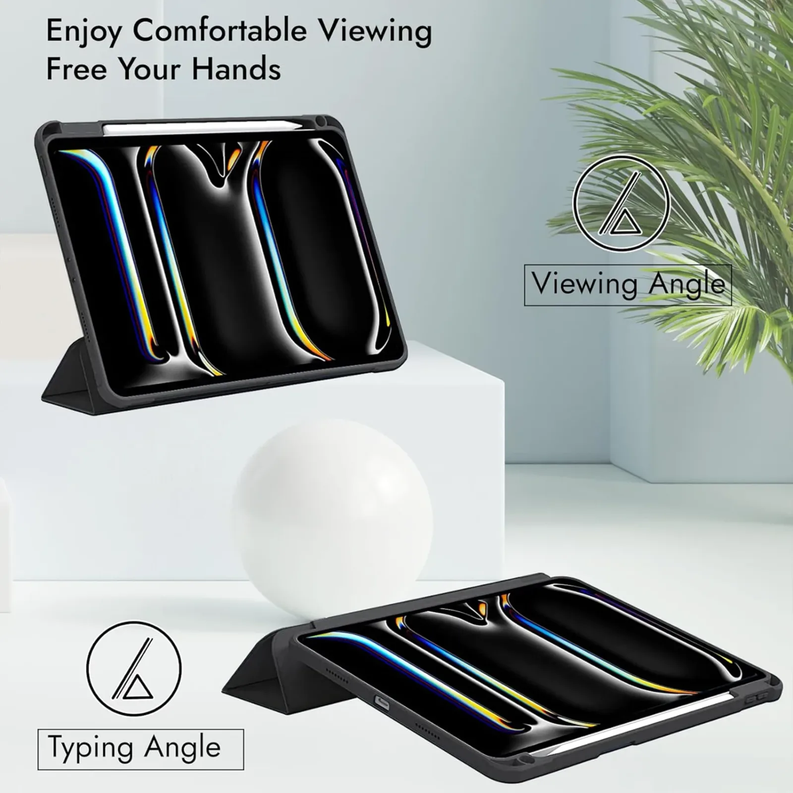 Trifold Design and Pencil Holder : Enjoy the convenience of the flip design, providing highly adjustable viewing angles, making it great for work, browsing, and multimedia on your iPad Pro 11 inch M4. Comes with Integrated Pen Holder to safely carry your Pencil.