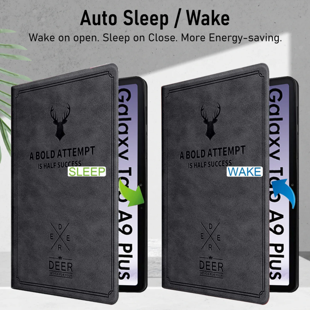 Introducing the Robustrion Deer Pattern Cover for Samsung Galaxy Tab A9 Plus 11 inch – a sleek and stylish solution that combines protection and functionality. This slim flip case offers full-body coverage, safeguarding your tablet from scratches, dust, and minor drops, all while maintaining the tablet’s slim profile. Specifically designed Cover for Samsung Tab A9 Plus 11 inch, it features precise cutouts for easy access to all ports and functions. One standout feature is the case’s versatile stand functionality, which lets you prop up your tablet in various viewing angles, ideal for hands-free entertainment or productivity tasks. The magnetic closure adds a layer of convenience by securely sealing the case to protect your tablet’s screen when not in use and waking it up when opened, all while conserving battery life. Elevate your tablet experience with this Case Cover for Samsung A9 Plus Tablet 11 inch, combining protection, style, and practicality in one package.
