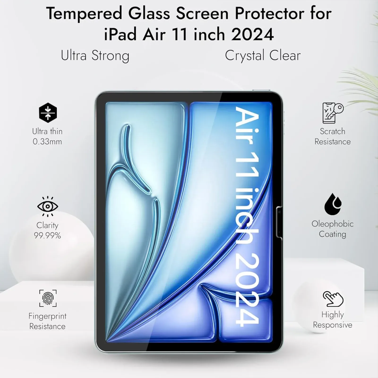 Robustrion Tempered Glass for iPad Air 11 inch M2 Screen Protector Guard for iPad Air 11 inch M2 6th Gen Generation
