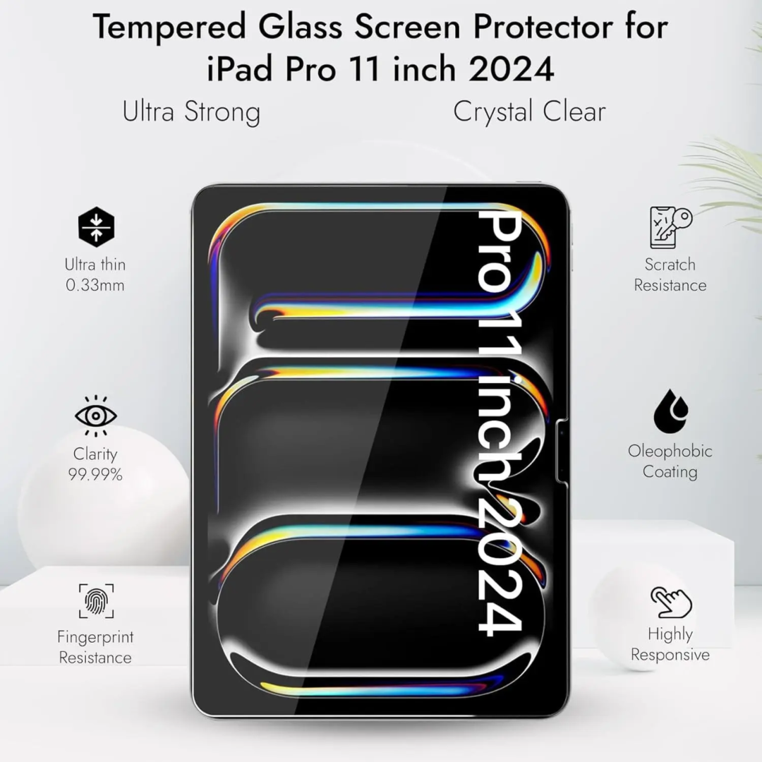 Compatibility : This Tempered Glass Screen Protector is Only Compatible with iPad Pro 11 inch M4 2024. It will not fit any other model.