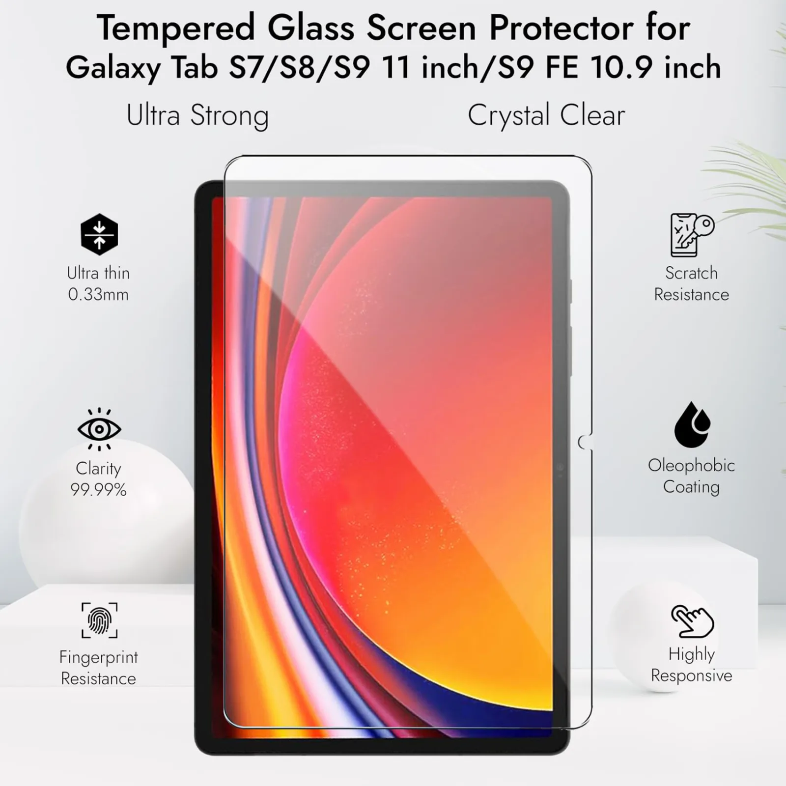HIGH CLARITY AND TRANSPARENCY : Features ultra clarity with 99.9% transparency to allow an optimal, natural viewing experience on your Samsung Galaxy Tab S7/S8/S9/S9 FE.